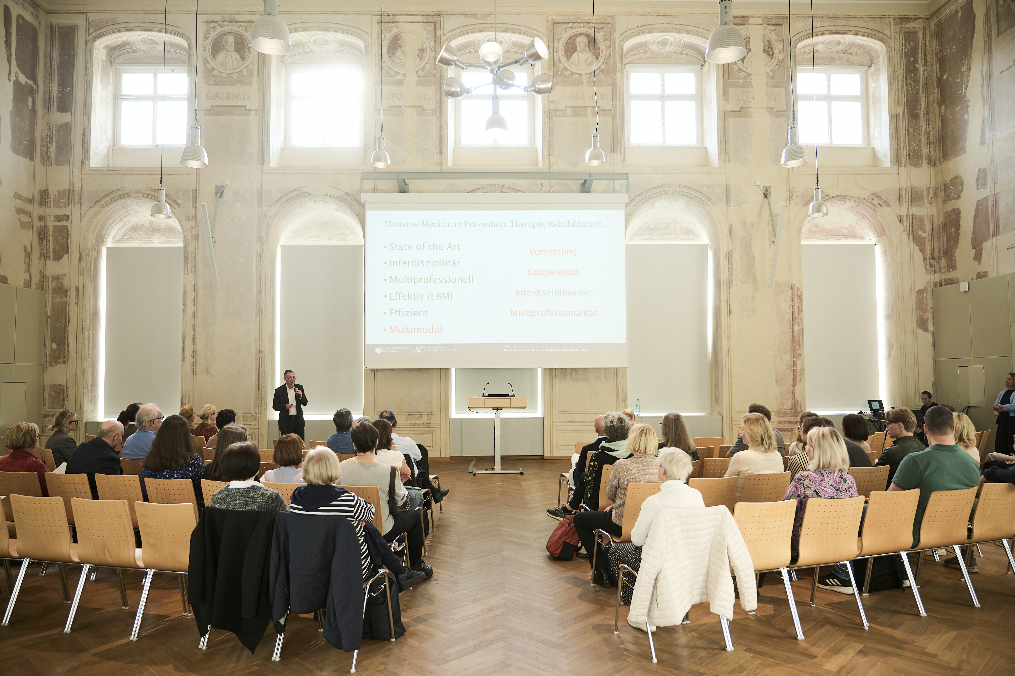 Am 14. Oktober 2025 fand das zweite Symposium des Comprehensive Center for Musculoskeletal Disorders (CCMSD) statt. Nach dem erfolgreichen Auftakt im Jahr 2024 wurde auch heuer wieder zu einem spannenden Nachmittag in das Josephinum eingeladen. Ziel war es, interessierten Mitarbeiter:innen der MedUni Wien sowie Experten aus den am CCMSD beteilgiten Fachdisziplinen aktuelle Entwicklungen und wissenschaftliche Erkenntnisse im Bereich der muskuloskelettalen Medizin näherzubringen.
