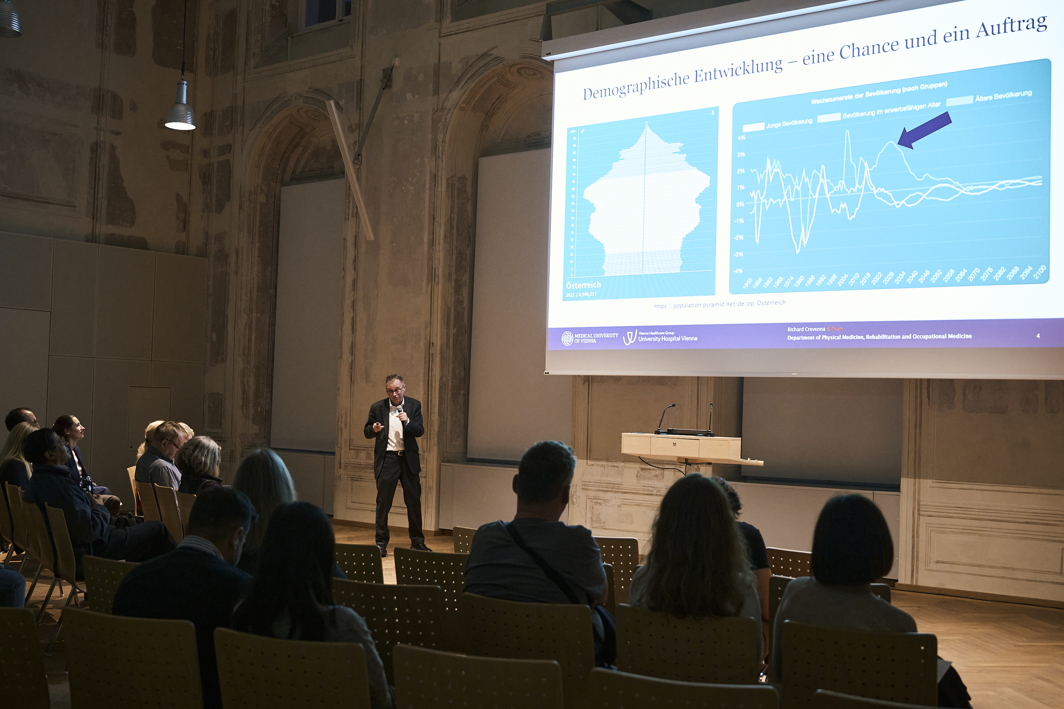 Unter der Moderation von Richard Crevenna und Iris Nöbauer-Huhmann wurden innovative und praxisrelevante Themen rund um das Theme Wirbelsäule vorgestellt und diskutiert.